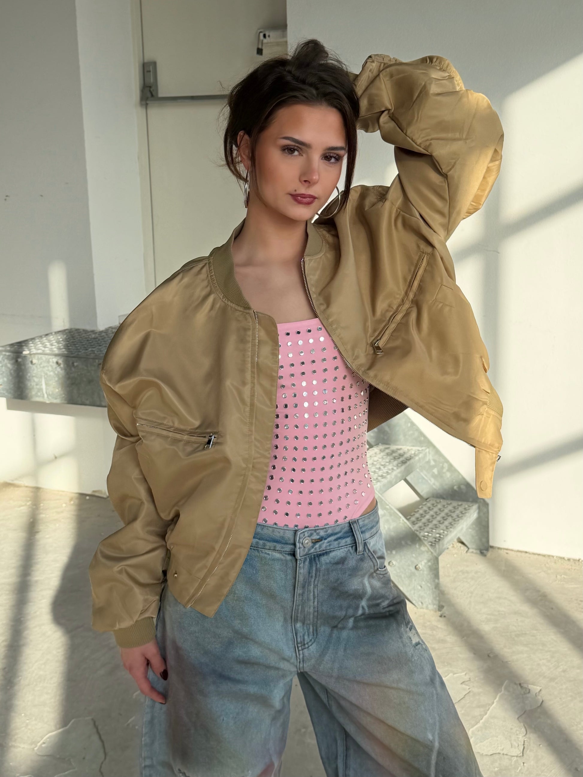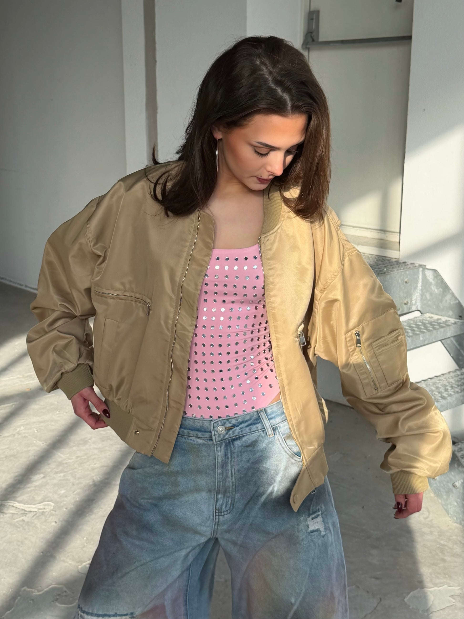 • Pasvorm: Oversized, bomber model