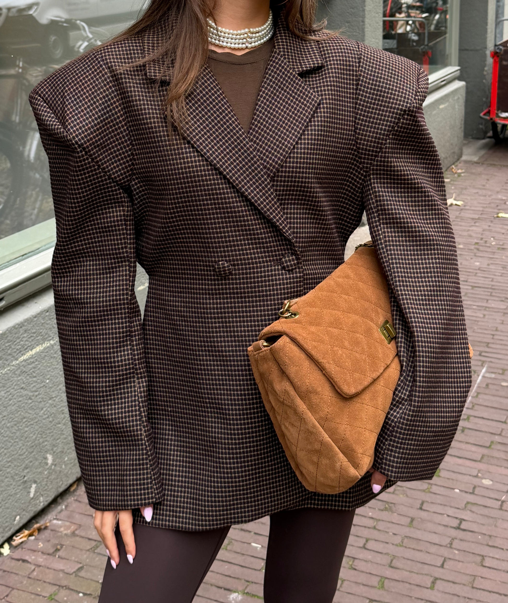 Deze verstelbare parel choker past perfect in het modebeeld van nu. Superleuk te combineren met onze Franky blazer voor een classy, trendy look!