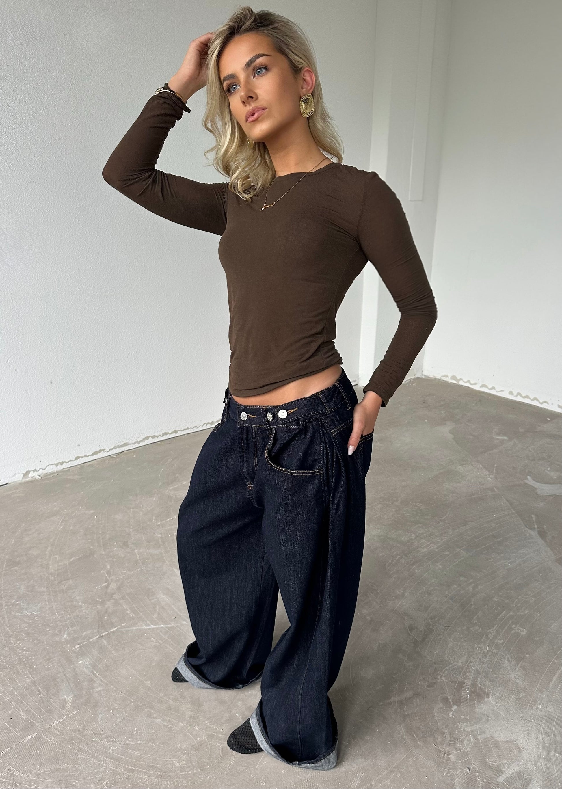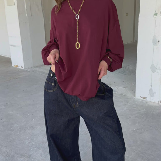 Oversized jeans in de trendkleur van dit seizoen. De taille is eenvoudig verstelbaar dankzij 3 extra knopen aan beide kanten, voor de perfecte pasvorm.