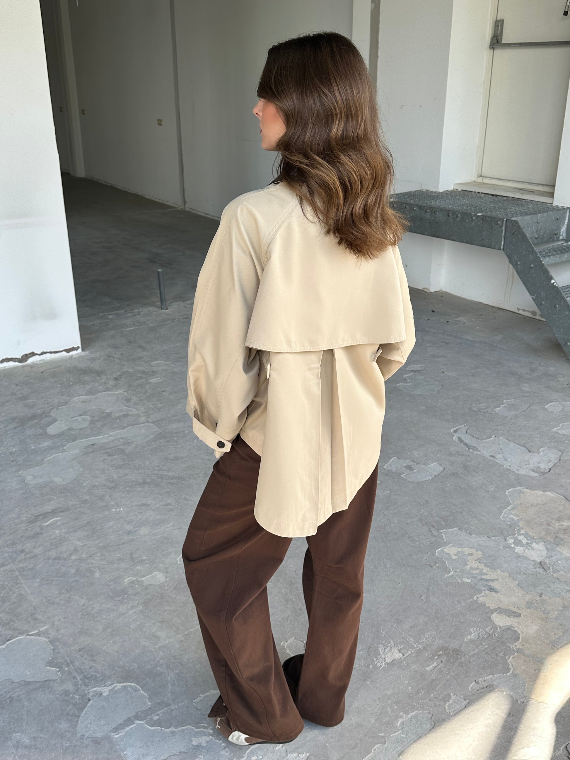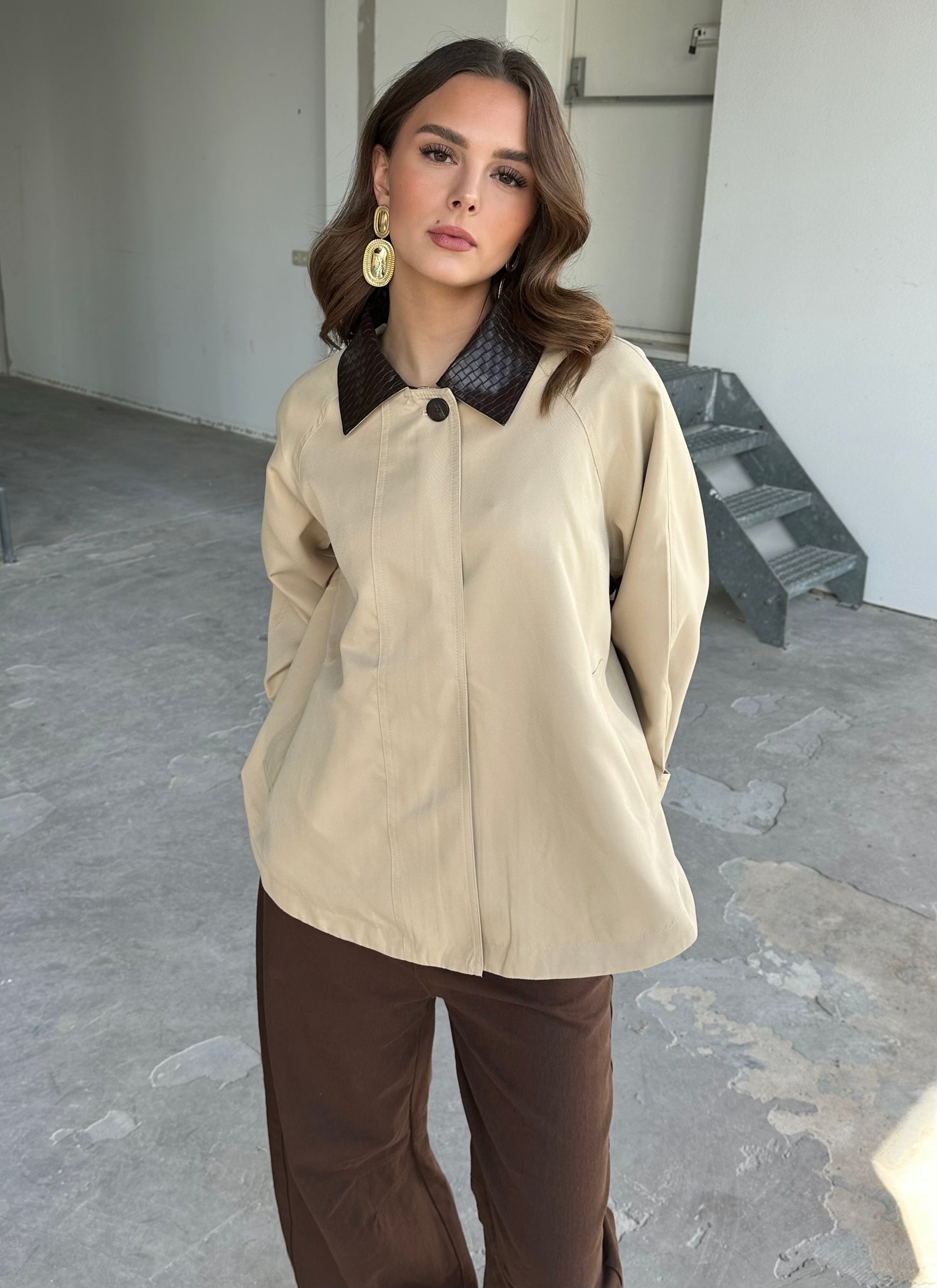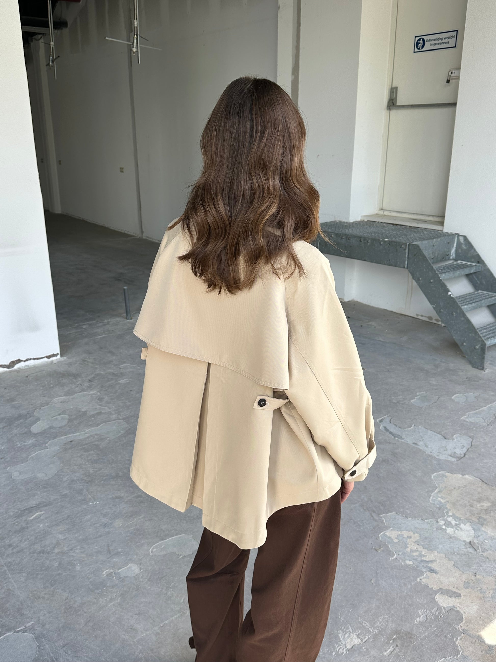Beige trenchcoat jasje. Luxe gevoerd jasje, stoer maar ook klassiek te dragen. One size.