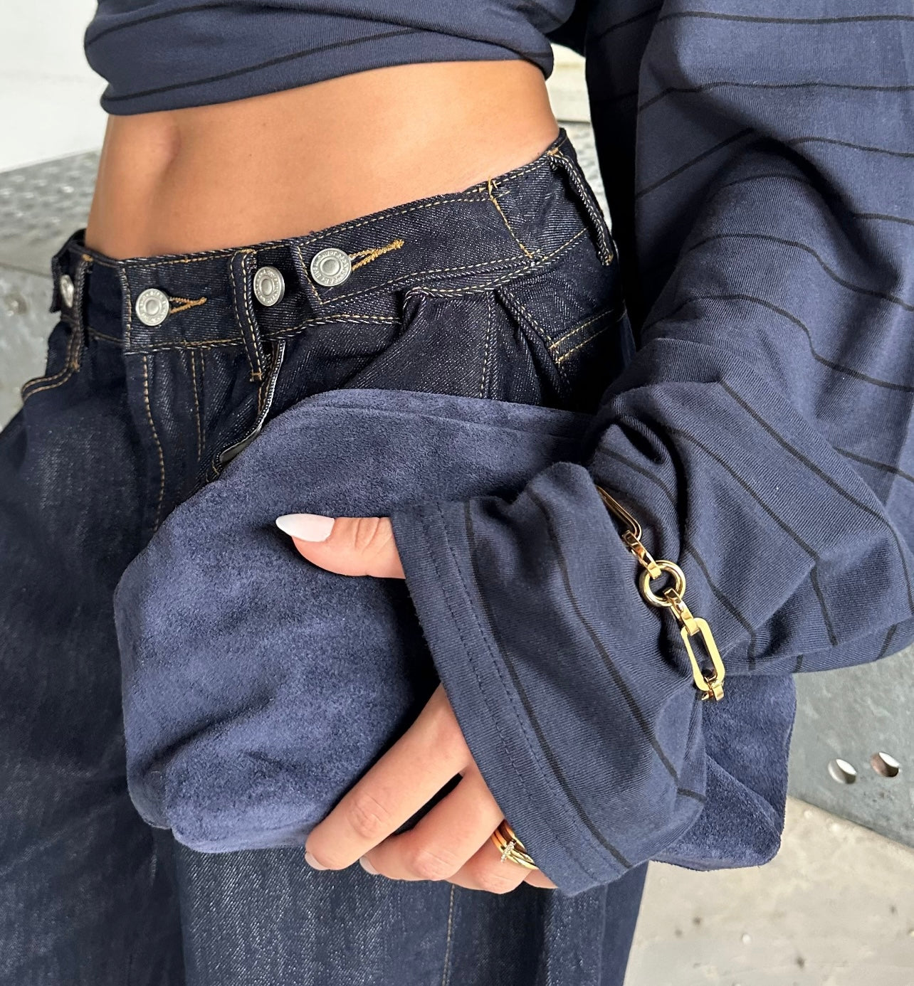 Donkerblauwe suède clutch