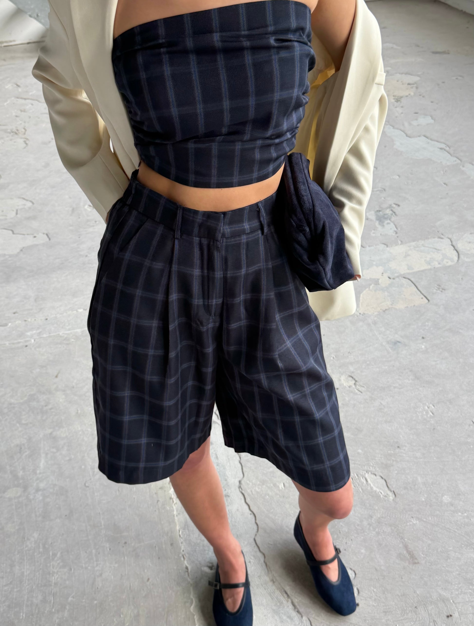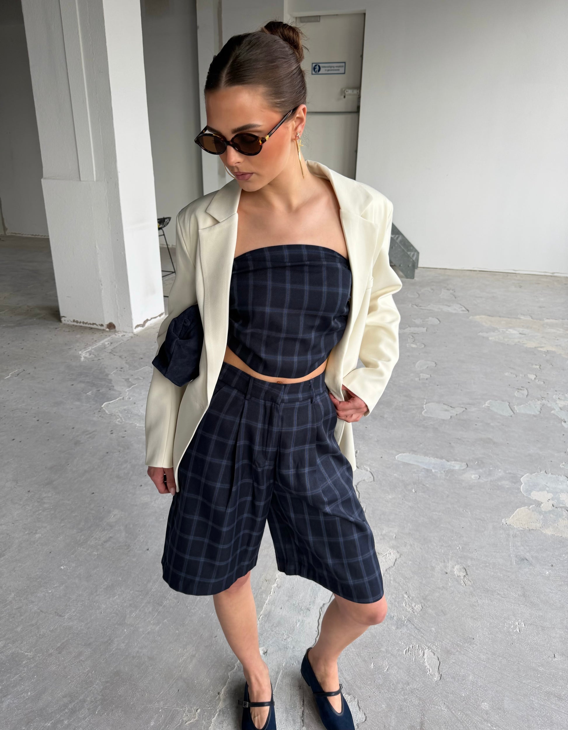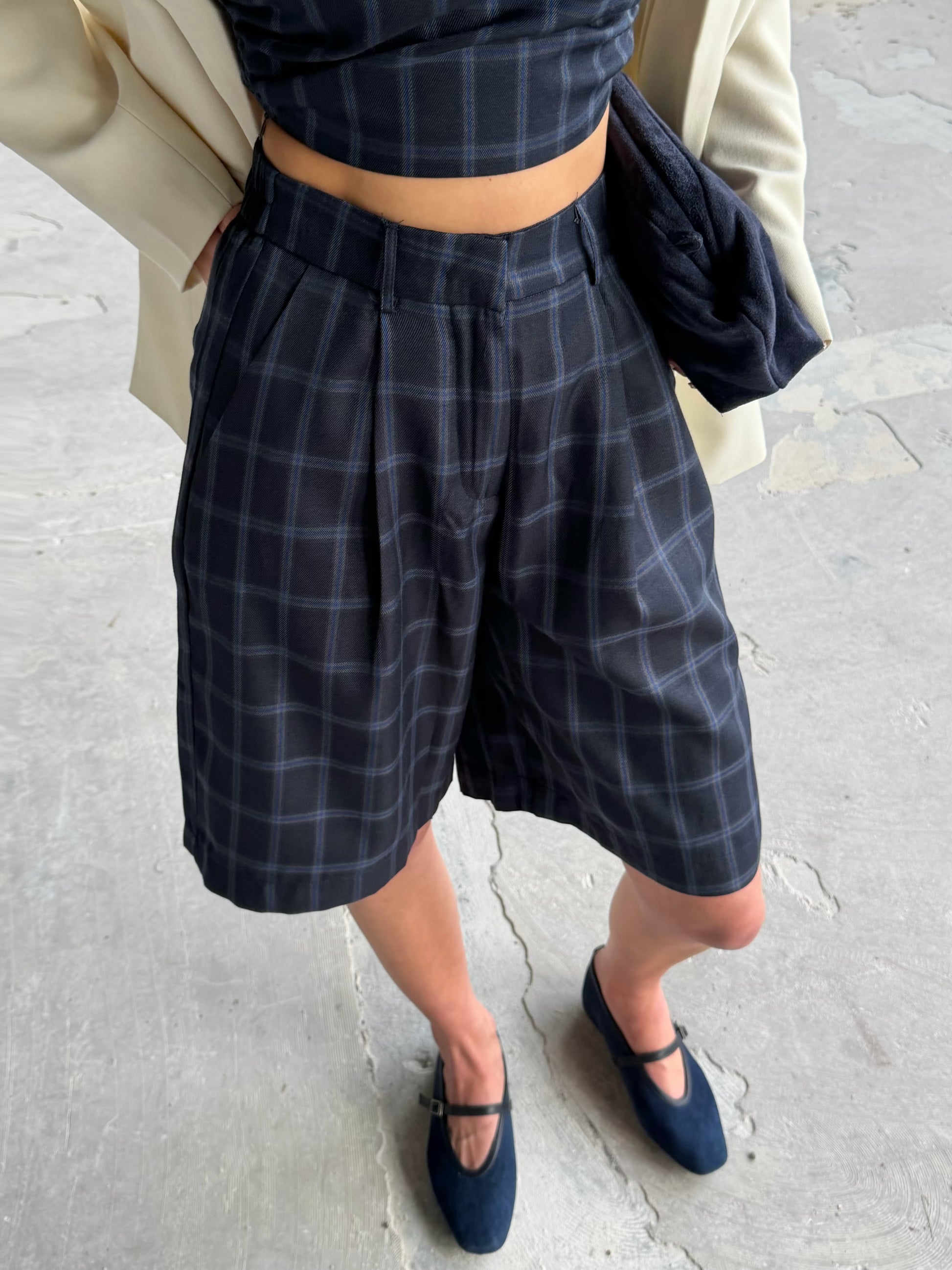 Bermuda met blokprint. Trendy en festival proof. Draag hem overdag met een instapper. In de avond combineer je hem met hakken. Mooi als set te dragen met de bijpassende Dien top.