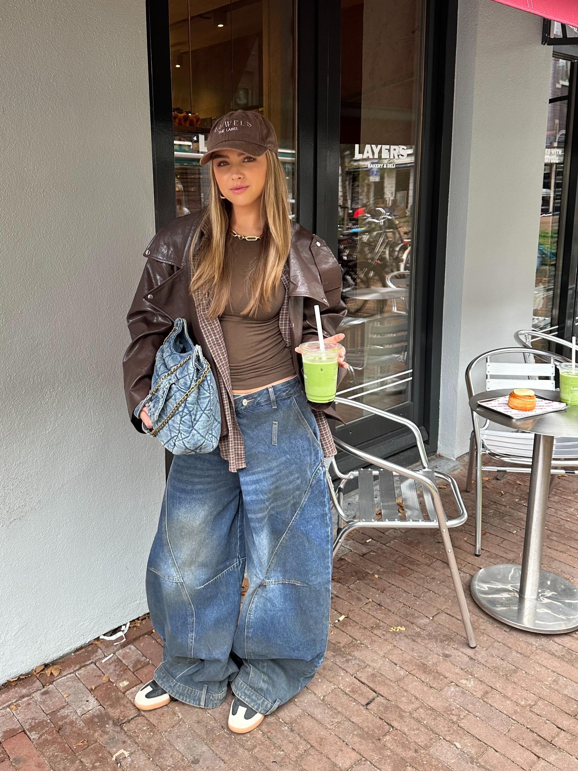 Oversized jeans in een stoere “vieze” wassing. Met extra grote klepzakken achterop de broek.
