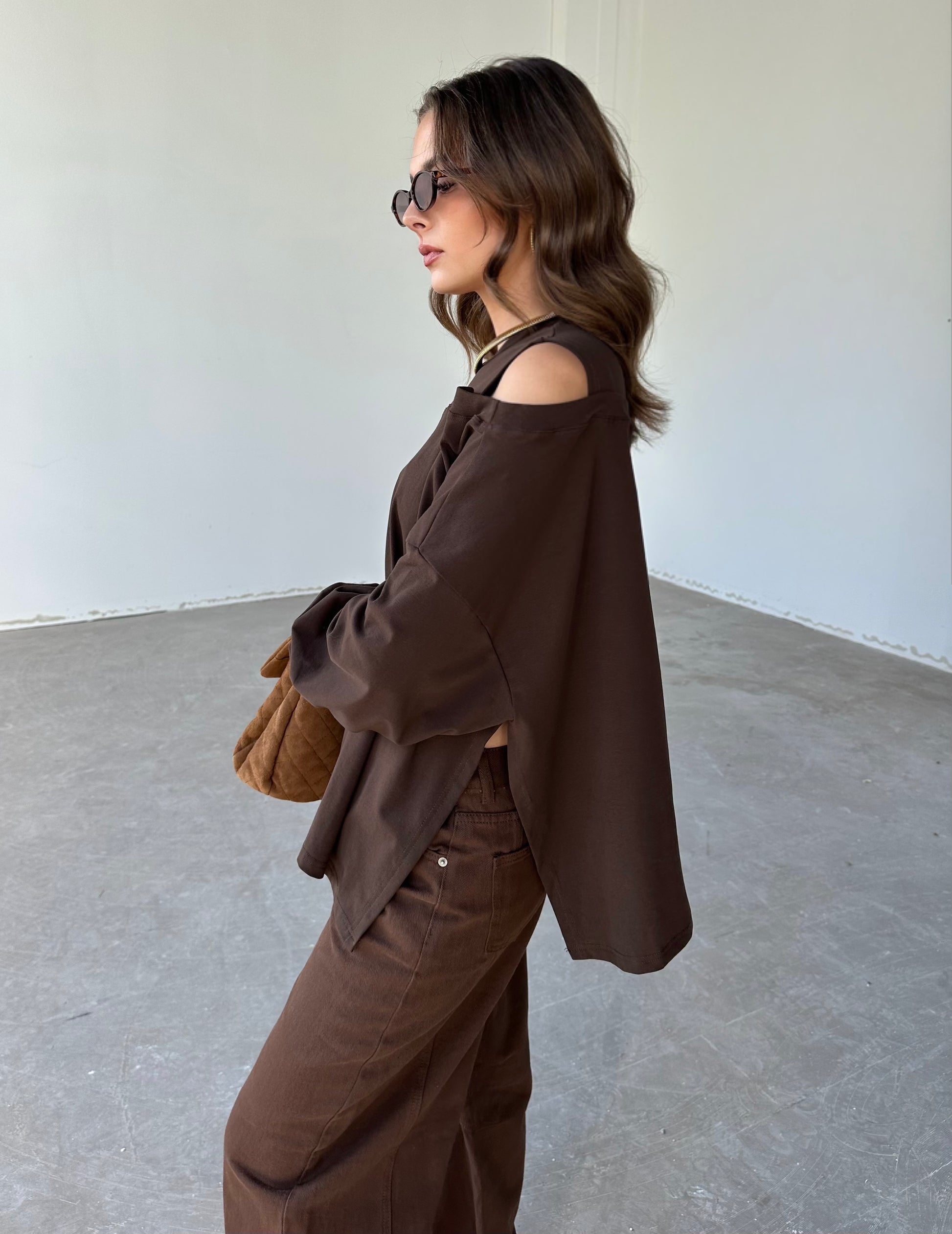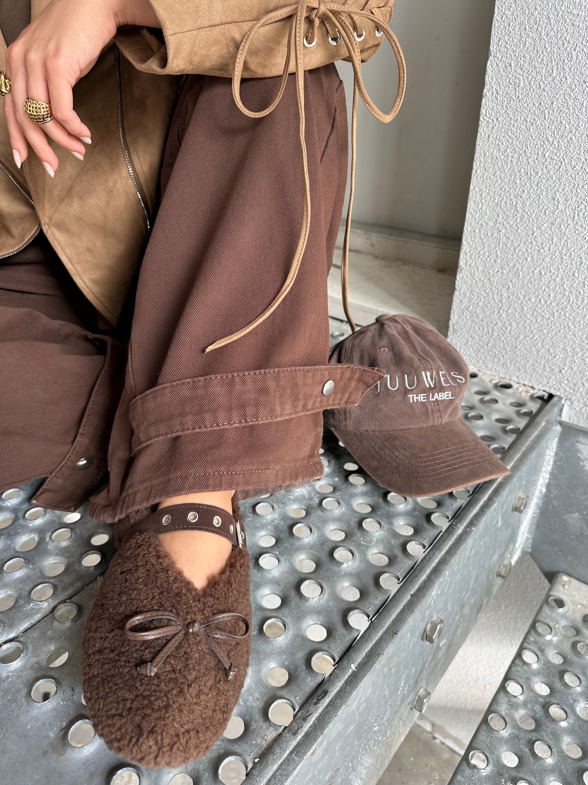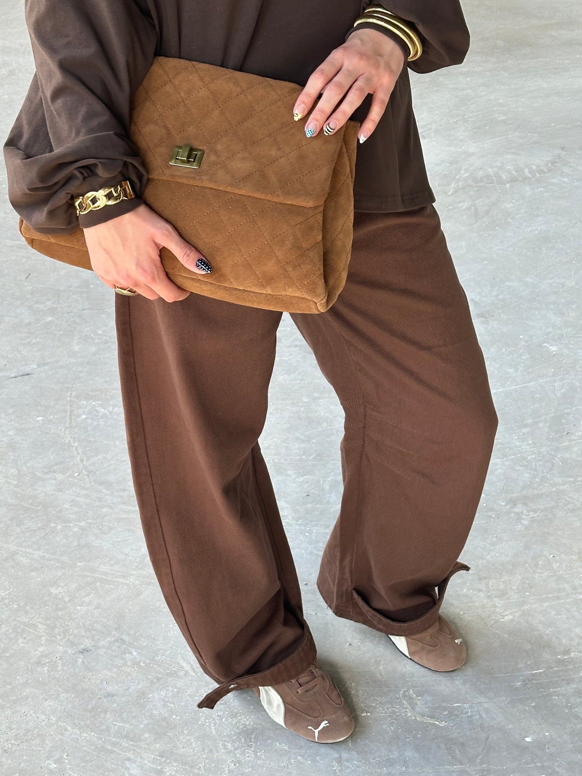 Donkerbruine oversized jeans met een uniek detail aan de onderkant – stoer en trendy.