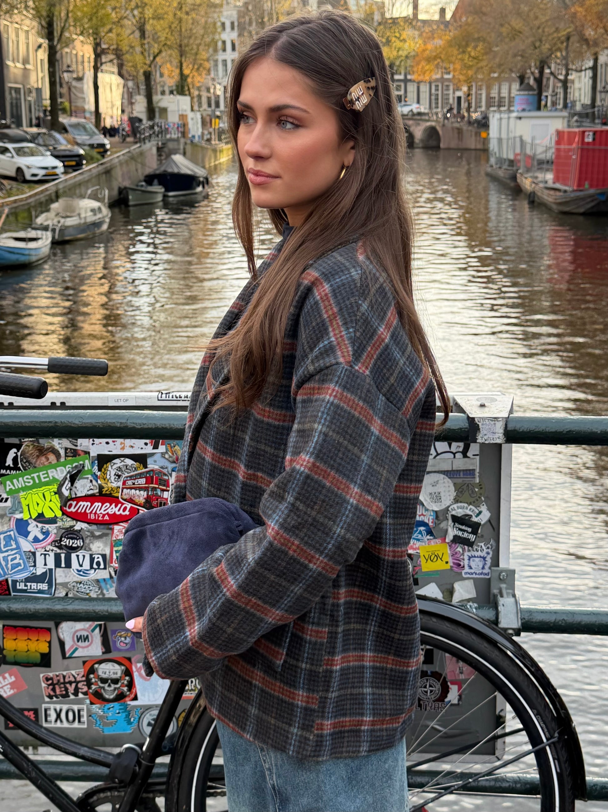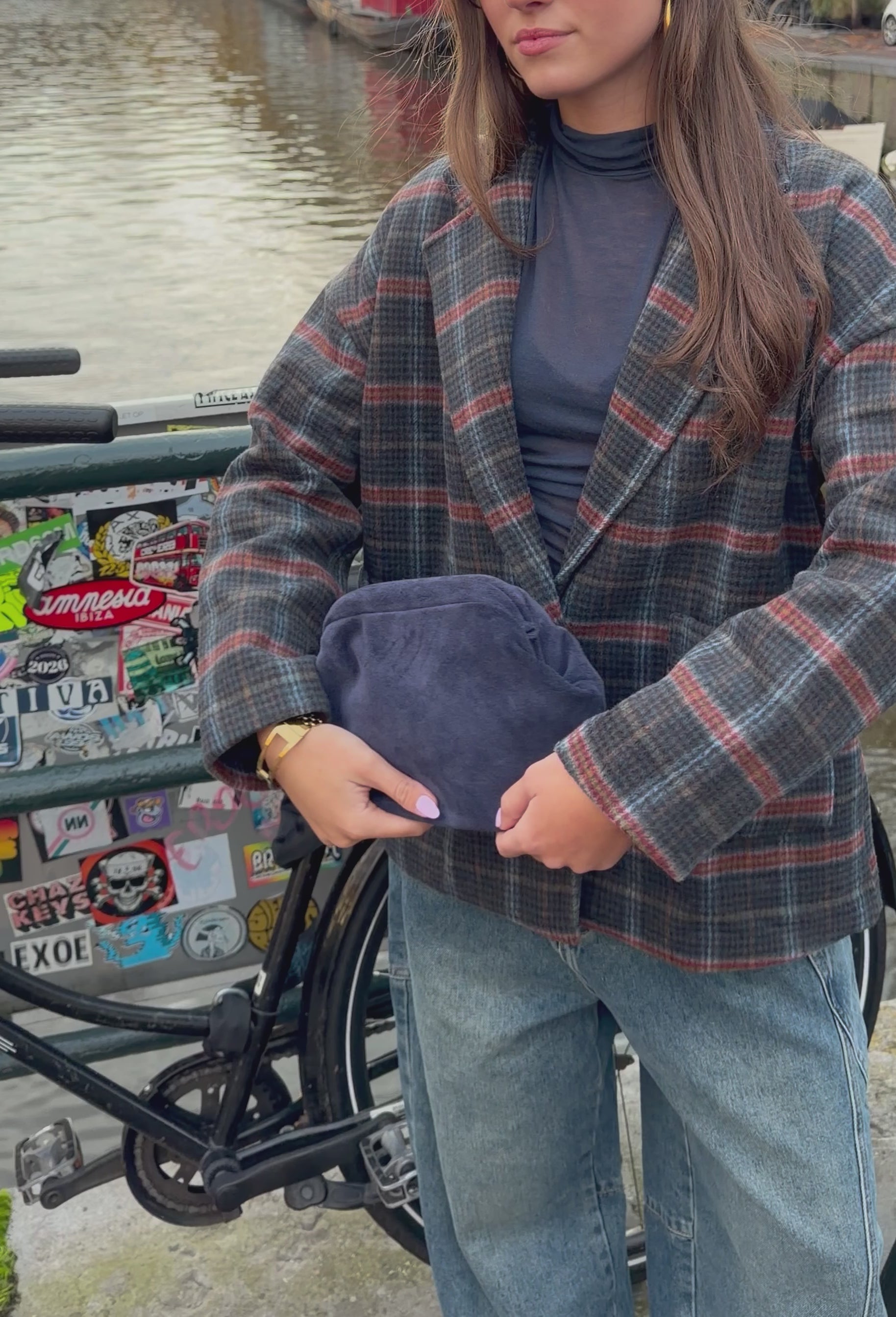 Blauwe geblokte blazer, veelzijdig en stijlvol. Draag het als buiten jasje of als colbertje binnen. Perfect voor elke gelegenheid!