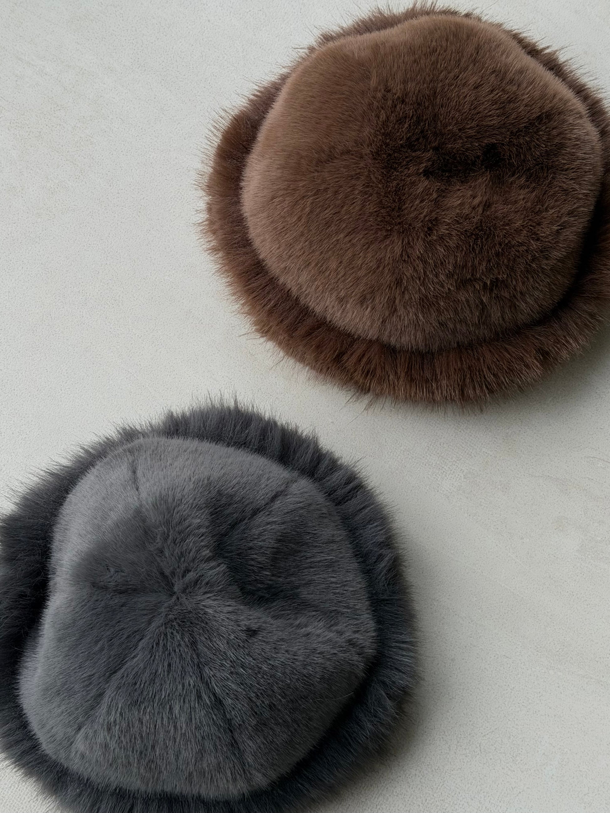 Hoedje van faux fur. Zacht, warm en licht om te dragen.