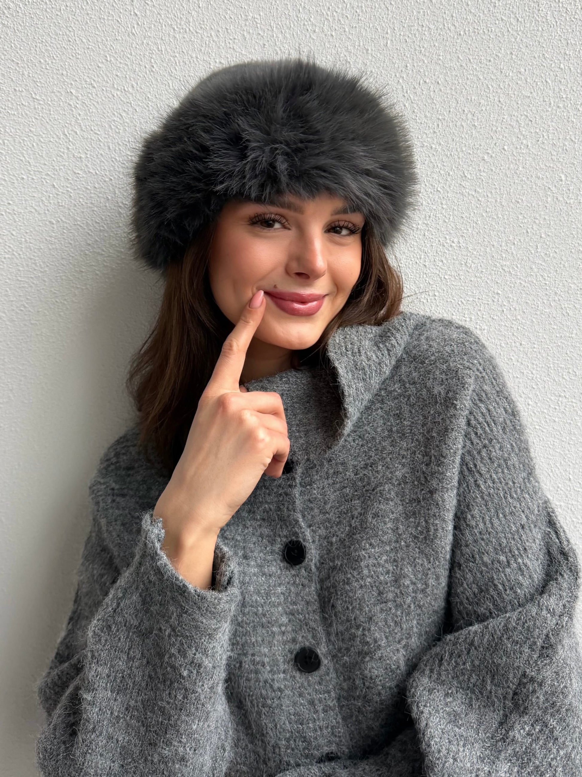 Hoedje van faux fur. Zacht, warm en licht om te dragen.