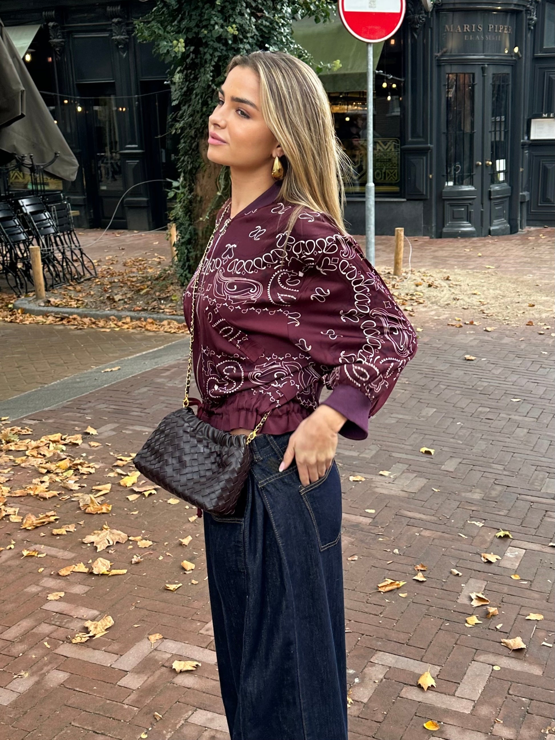 Prachtig stijlvol jasje en top in één. De luxueuze stof met 20% zijde geeft een subtiele glans en voelt heerlijk soepel aan. De Bordeaux paisleyprint zorgt voor een tijdloze, moeiteloos coole look die je zowel chic als casual kunt dragen. Dankzij de relaxed fit valt het jasje losjes, terwijl het koord aan de onderzijde zorgt voor een speels, getailleerd “blouson” effect. Perfect te combineren met jeans of een pantalon voor een easy, maar verfijnde outfit.