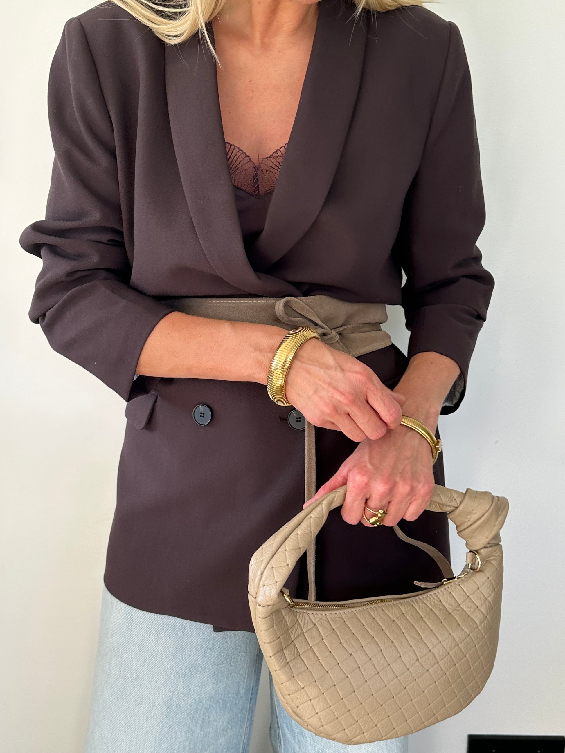 De Noëll handtas is een must-have voor jouw collectie. Gemaakt van hoogwaardig classic grain leer, straalt deze tas zowel klasse als duurzaamheid uit, wat zorgt voor een tijdloze look. De goudkleurige hardware voegt een verfijnde afwerking toe, die zorgt voor een luxueuze uitstraling. Deze veelzijdige handtas sluit naadloos aan op verschillende stijlen en gelegenheden.